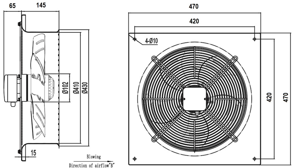 AXF400BG – Ventilator axial pentru spații comerciale, ateliere și bucătării.