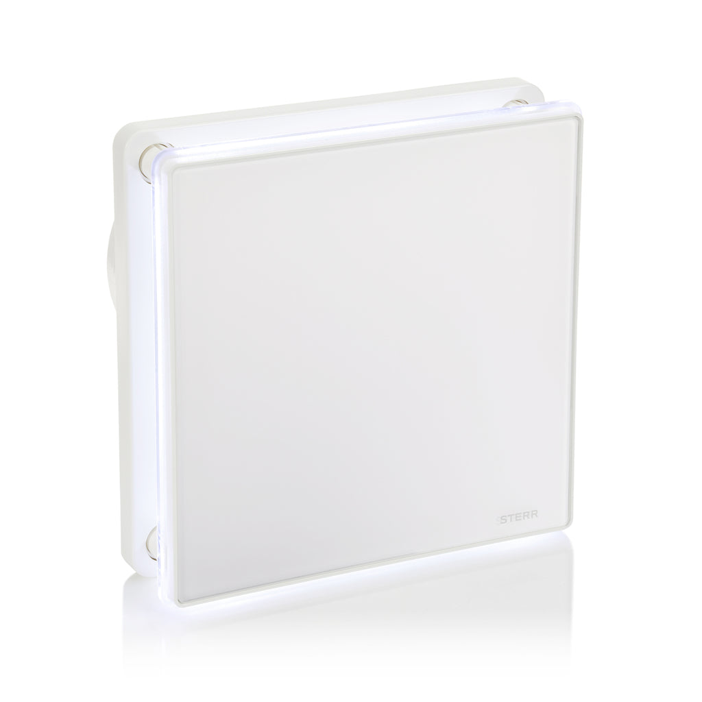 BFS100LH – Ventilator silențios pentru baie cu iluminare LED și senzor de umiditate oferind control automat al ventilației cu ambianță decorativă pentru băi și toalete.