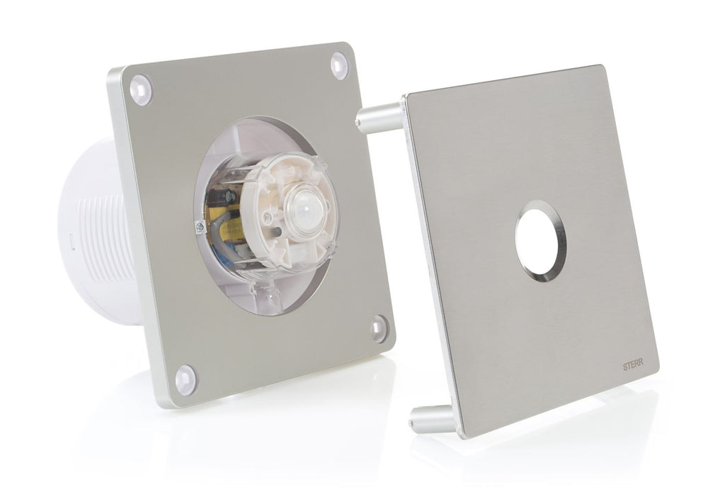 STERR BFS100P-S - 100 mm Ventilator de Baie, Senzor de mișcare, 90 m³/h, Argintiu