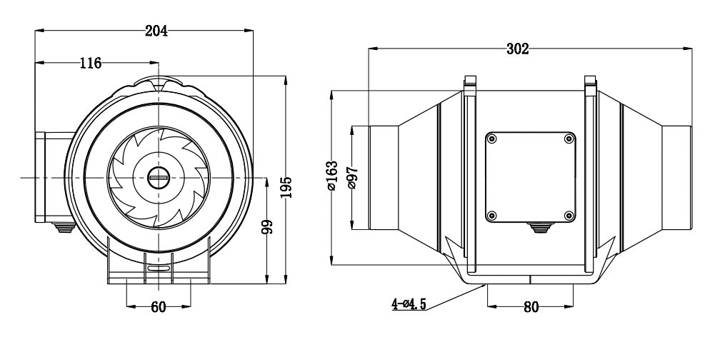 - Dimensiuni (L×A×Î): 204×195×302 mm
