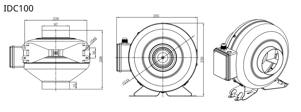 IDC100 – Ventilator centrifugal inline cu presiune înaltă pentru conducte lungi.