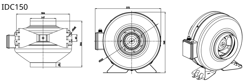 IDC150 – Ventilator centrifugal inline cu presiune înaltă pentru conducte lungi.